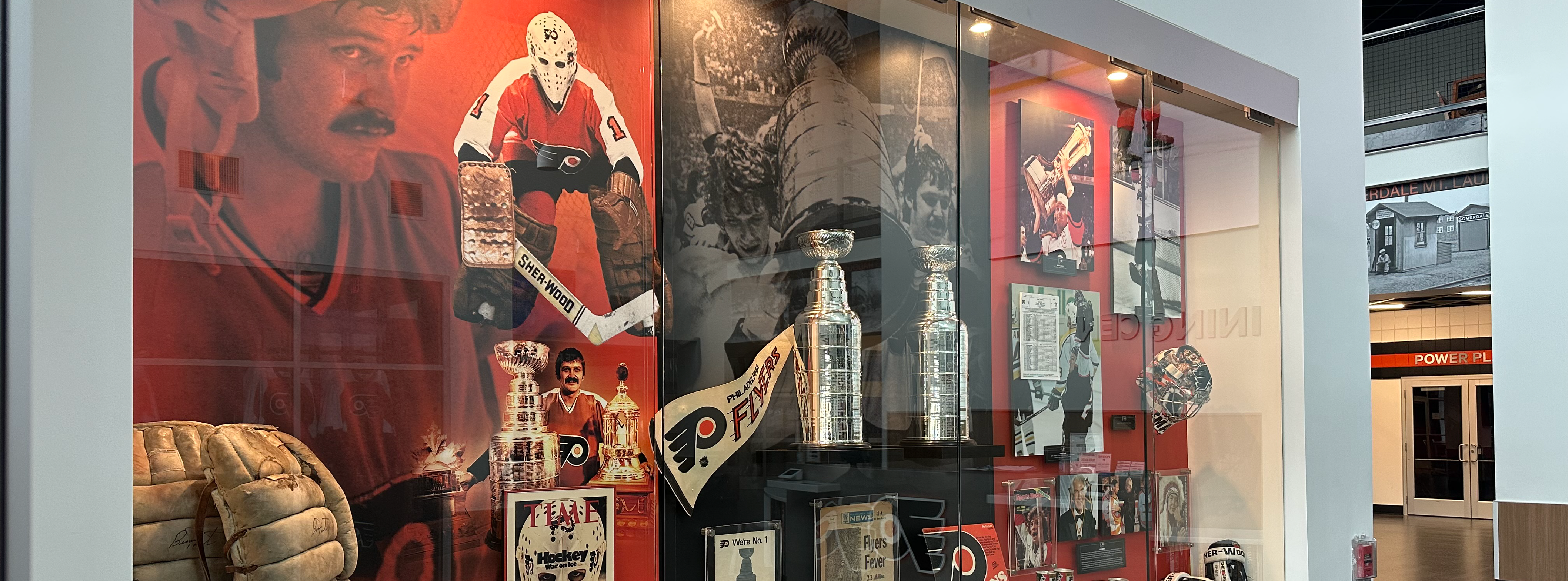 Named the '67 Arena, the rink serves as a visual and symbolic reminder of the Flyers' enduring impact on the sport of hockey and the city of Philadelphia. From the team's humble beginnings to its evolution into one of the NHL's most iconic organizations, the new arena celebrates the spirit of the orange and black through featured artwork and tributes to legendary players such as the club's first captain Lou Angotti, Bernie Parent, Bobby Clarke, Gary Dornhoefer, and Joe Watson.